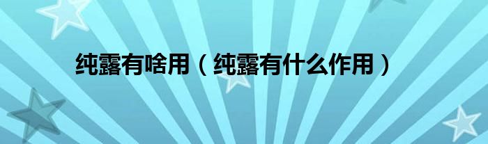 大家好,纯露有啥用,纯露有什么作用很多人还不知道,现在让我们一起来看看吧!