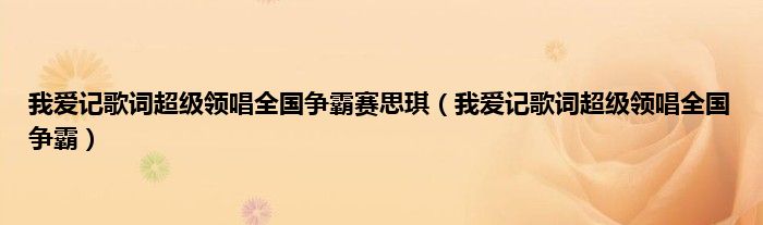 以上就是【我爱记歌词超级领唱全国争霸赛思琪,我爱记歌词超级领唱全国争霸】相关内容。