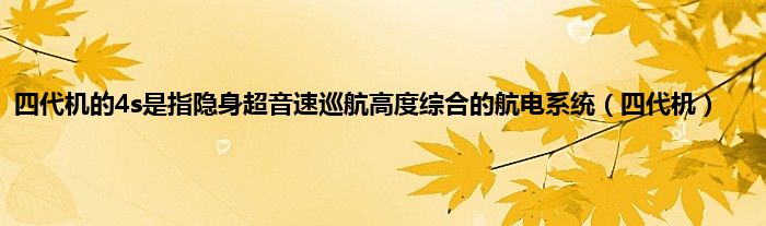 以上就是【四代机的4s是指隐身超音速巡航高度综合的航电系统,四代机】相关内容。