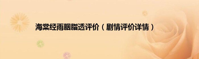 本文,海棠经雨胭脂透评价,剧情评价详情到此就分享完毕,希望对大家有所帮助。