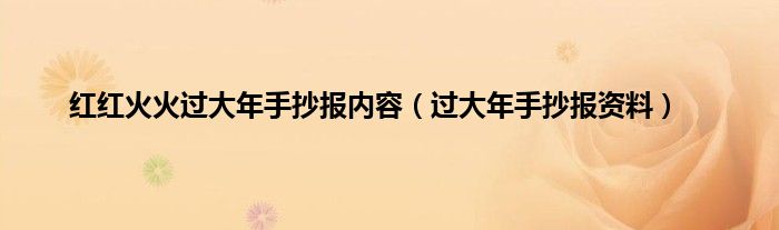 本文,红红火火过大年手抄报内容,过大年手抄报资料到此就分享完毕,希望对大家有所帮助。