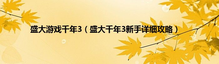 本文,盛大游戏千年3,盛大千年3新手详细攻略到此就分享完毕,希望对大家有所帮助。