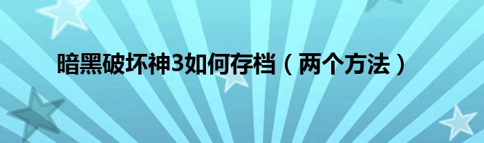 大家好,暗黑破坏神3如何存档,两个方法很多人还不知道,现在让我们一起来看看吧!