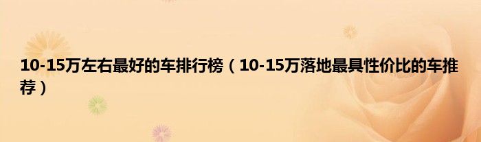 本文,10-15万左右最好的车排行榜,10-15万落地最具性价比的车推荐到此就分享完毕,希望对大家有所帮助。