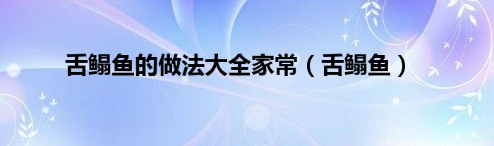 以上就是【舌鳎鱼的做法大全家常,舌鳎鱼】相关内容。