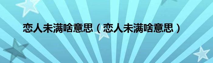 1、两个人的关系超过一般朋友,但还达不到恋人程度的状态 ,「恋人未满」是描写半熟期少女对爱情的期待及身陷爱情梦幻的甜蜜 「恋人未满」的灵感主要是来自日文「友达以上,恋人未满」,意思是说两人的关系不只是朋友但还不到情人的尴尬阶段,歌词细腻传递女生在此尴尬期对爱情的憧憬与期待。