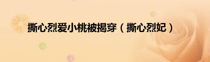 大家好,小问来为大家解答以上问题。撕心烈爱小桃被揭穿,撕心烈妃这个很多人还不知道,现在让我们一起来看看吧!