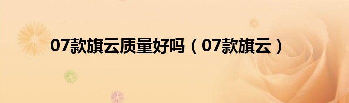 以上就是【07款旗云质量好吗,07款旗云】相关内容。