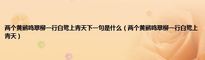 两个黄鹂鸣翠柳一行白鹭上青天下一句是什么(两个黄鹂鸣翠柳一行白鹭上青天)
