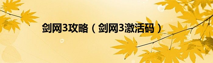 大家好,小问来为大家解答以上问题。剑网3攻略,剑网3激活码这个很多人还不知道,现在让我们一起来看看吧!