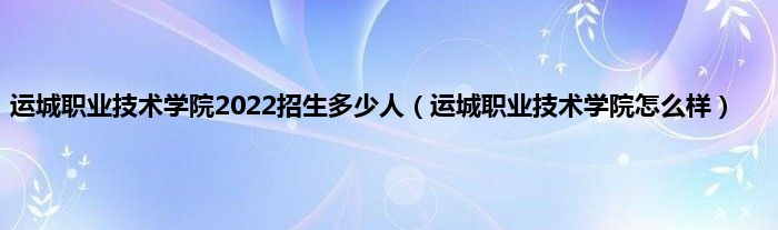 以上就是【运城职业技术学院2022招生多少人,运城职业技术学院怎么样】相关内容。