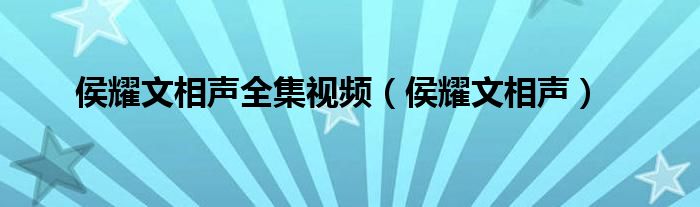 大家好,小问来为大家解答以上问题。侯耀文相声全集视频,侯耀文相声这个很多人还不知道,现在让我们一起来看看吧!