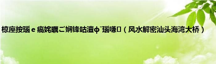 大家好,小问来为大家解答以上问题。椋庢按瑙e瘑姹曞ご娴锋咕澶фˉ瑙嗛,风水解密汕头海湾大桥这个很多人还不知道,现在让我们一起来看看吧!