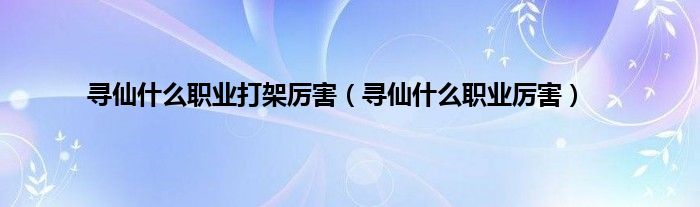 以上就是【寻仙什么职业打架厉害,寻仙什么职业厉害】相关内容。
