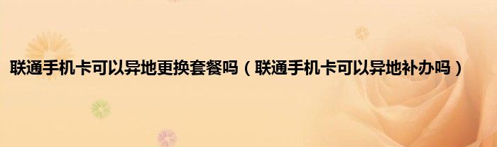 以上就是【联通手机卡可以异地更换套餐吗,联通手机卡可以异地补办吗】相关内容。