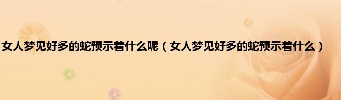 大家好,综合小编来为大家讲解下。女人梦见好多的蛇预示着什么呢,女人梦见好多的蛇预示着什么这个很多人还不知道,现在让我们一起来看看吧!