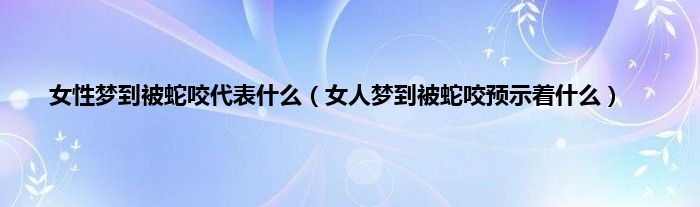 大家好,综合小编来为大家讲解下。女性梦到被蛇咬代表什么,女人梦到被蛇咬预示着什么这个很多人还不知道,现在让我们一起来看看吧!