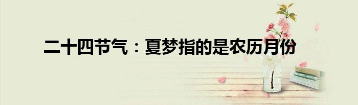大家好,综合小编来为大家讲解下。二十四节气:夏梦指的是农历月份这个很多人还不知道,现在让我们一起来看看吧!