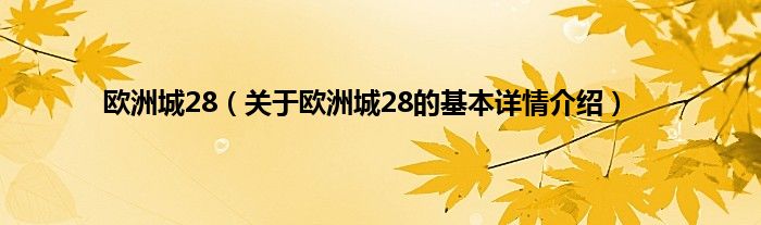 本文关于欧洲城28的基本详情介绍就讲解完毕,希望对大家有所帮助。