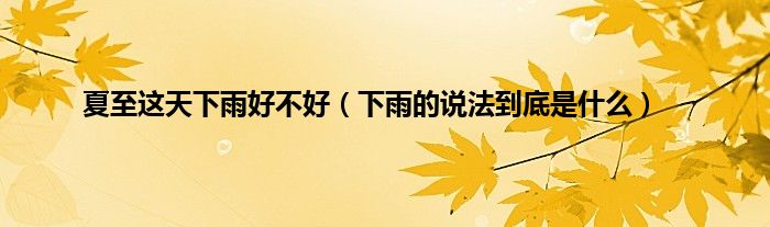 大家好,综合小编来为大家讲解下。夏至这天下雨好不好,下雨的说法到底是什么这个很多人还不知道,现在让我们一起来看看吧!