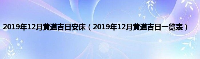 大家好,综合小编来为大家讲解下。2019年12月黄道吉日安床,2019年12月黄道吉日一览表这个很多人还不知道,现在让我们一起来看看吧!