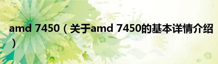 本文关于amd 7450的基本详情介绍就讲解完毕,希望对大家有所帮助。