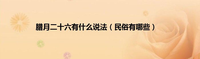 大家好,综合小编来为大家讲解下。腊月二十六有什么说法,民俗有哪些这个很多人还不知道,现在让我们一起来看看吧!