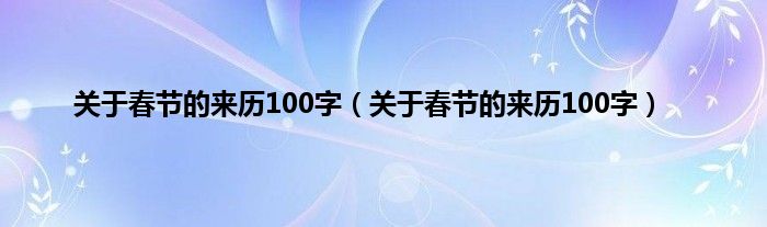 5、春节的来历100字四: 关于春节的起源有多种说法,但其中被普遍接受的说法是春节由虞舜时期兴起。公元前2000多年的一天,舜即天子位,带领着部下人员,祭拜天地,从此,人们就把这一天当作岁首,据说这就是农历新年的由来,后来叫春节。