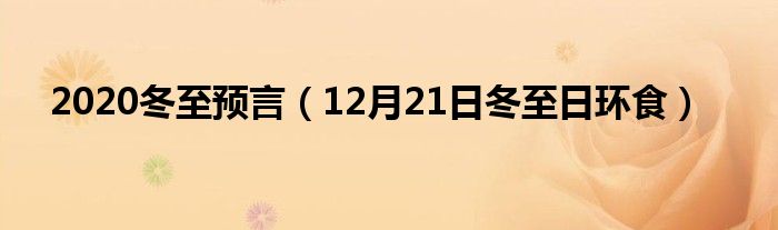 大家好,综合小编来为大家讲解下。2020冬至预言,12月21日冬至日环食这个很多人还不知道,现在让我们一起来看看吧!