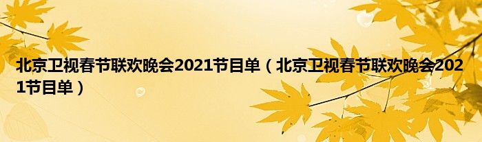大家好,综合小编来为大家讲解下。北京卫视春节联欢晚会2021节目单,北京卫视春节联欢晚会2021节目单这个很多人还不知道,现在让我们一起来看看吧!