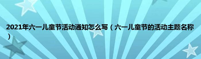 本文2021年六一儿童节活动通知怎么写,六一儿童节的活动主题名称到此分享完毕,希望对大家有所帮助。