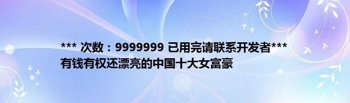 大家好,综合小编来为大家讲解下。*** 次数:9999999 已用完请联系开发者*** 有钱有权还漂亮的中国十大女富豪这个很多人还不知道,现在让我们一起来看看吧!