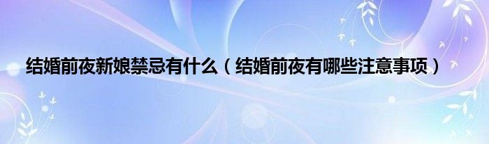 大家好,综合小编来为大家讲解下。结婚前夜新娘禁忌有什么,结婚前夜有哪些注意事项这个很多人还不知道,现在让我们一起来看看吧!