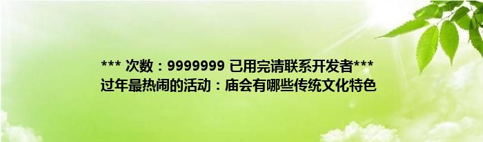 大家好,综合小编来为大家讲解下。*** 次数:9999999 已用完请联系开发者*** 过年最热闹的活动:庙会有哪些传统文化特色这个很多人还不知道,现在让我们一起来看看吧!