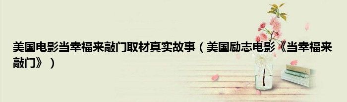 大家好,综合小编来为大家讲解下。美国电影当幸福来敲门取材真实故事,美国励志电影《当幸福来敲门》这个很多人还不知道,现在让我们一起来看看吧!