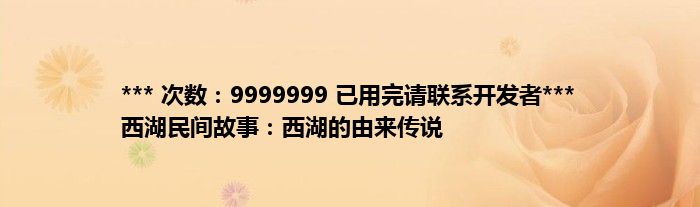 本文*** 次数:9999999 已用完请联系开发者*** 西湖民间故事:西湖的由来传说到此分享完毕,希望对大家有所帮助。