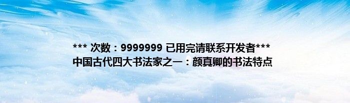 大家好,综合小编来为大家讲解下。*** 次数:9999999 已用完请联系开发者*** 中国古代四大书法家之一:颜真卿的书法特点这个很多人还不知道,现在让我们一起来看看吧!