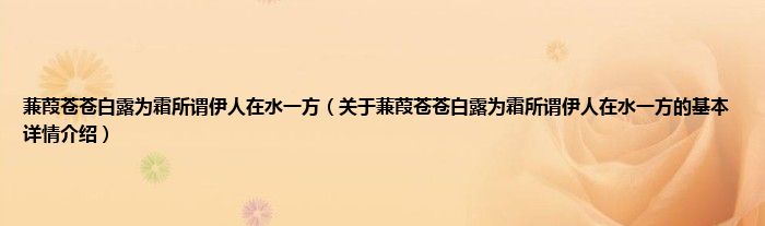 蒹葭苍苍白露为霜所谓伊人在水一方(关于蒹葭苍苍白露为霜所谓伊人在水一方的基本详情介绍)