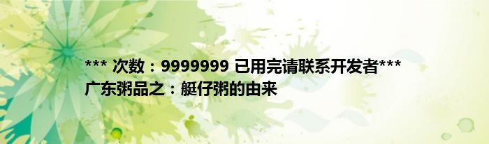 本文*** 次数:9999999 已用完请联系开发者*** 广东粥品之:艇仔粥的由来到此分享完毕,希望对大家有所帮助。