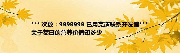 本文*** 次数:9999999 已用完请联系开发者*** 关于茭白的营养价值知多少到此分享完毕,希望对大家有所帮助。
