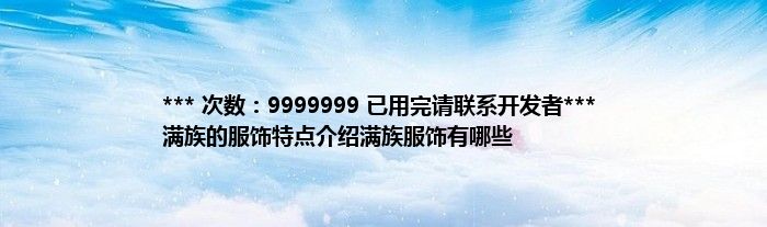 本文*** 次数:9999999 已用完请联系开发者*** 满族的服饰特点介绍满族服饰有哪些到此分享完毕,希望对大家有所帮助。