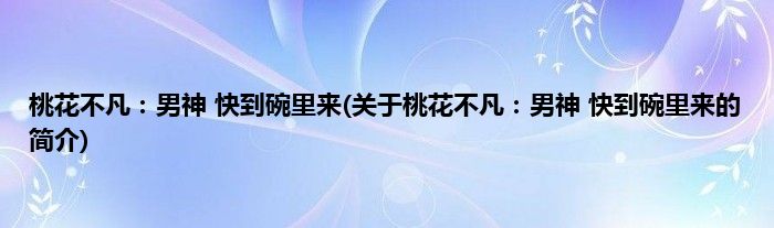 桃花不凡:男神 快到碗里来(关于桃花不凡:男神 快到碗里来的简介)