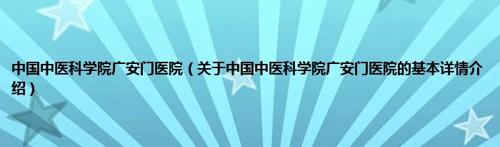 本文关于中国中医科学院广安门医院的基本详情介绍就讲解完毕,希望对大家有所帮助。