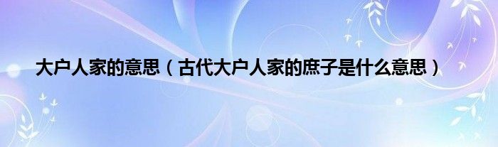 大家好,综合小编来为大家讲解下。大户人家的意思,古代大户人家的庶子是什么意思这个很多人还不知道,现在让我们一起来看看吧!