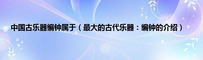 大家好,综合小编来为大家讲解下。中国古乐器编钟属于,最大的古代乐器:编钟的介绍这个很多人还不知道,现在让我们一起来看看吧!