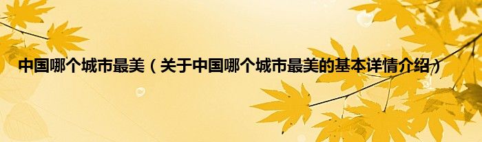 本文关于中国哪个城市最美的基本详情介绍就讲解完毕,希望对大家有所帮助。