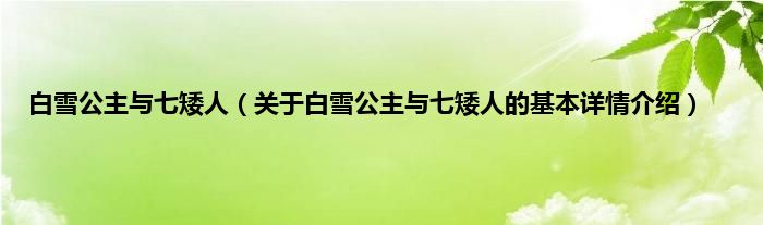 白雪公主与七矮人(关于白雪公主与七矮人的基本详情介绍)