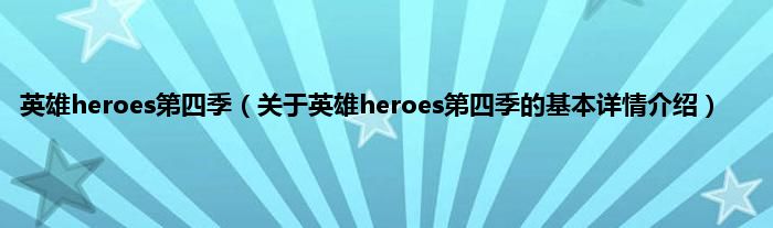 本文关于英雄heroes第四季的基本详情介绍就讲解完毕,希望对大家有所帮助。