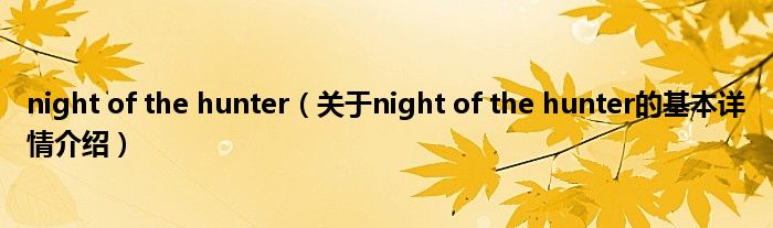 本文关于night of the hunter的基本详情介绍就讲解完毕,希望对大家有所帮助。