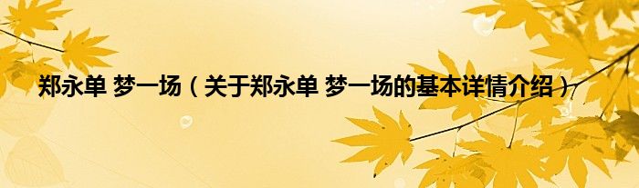 本文关于郑永单 梦一场的基本详情介绍就讲解完毕,希望对大家有所帮助。